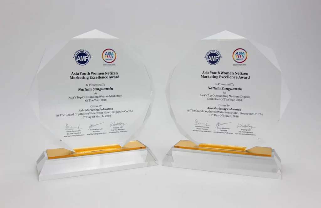 Congratulations to Thailand! Recently, Ms. Nattida Sanguansin, Managing Director and Co-founder of Buzzebees has won 2 prizes of Asia Marketing Federation – AMF), at Asian Marketing forum 2018. She’s the first female top executive that won 2 prizes; Asia’s Top Outstanding Woman Marketeer of the Year 2018 and Asia’s Top Outstanding Netizen Marketeer of the Year 2018, over those representatives of Asia countries, at Grand Copthorne Waterfront, Singapore.