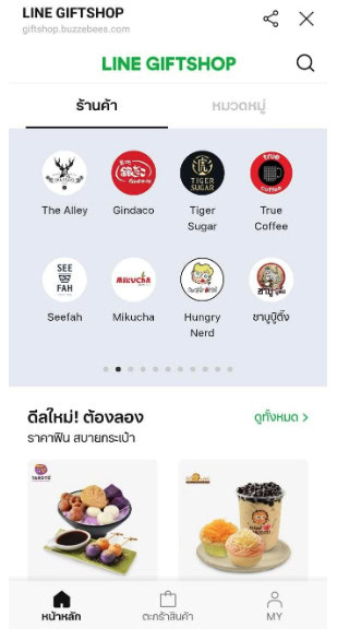 Currently, Buzzebees is trusted by LINE to be the exclusive partner, to find shops, deals, and privileges and publish them on LINE GIFTSHOP. Buzzebees uses consumers’ behavior data to analyze and provide products, rewards, discounts, and promotions that best fit LINE users’ need. Starting from the 1st phase, we will focus on the following categories: food&drink, ice-cream&desserts, and health&beauty, partnering with over top 100 shops and over 1,000 deals including Bar B Q plaza, Kiew Kai Ka, Somboon Seafood, Manee Me More, Zaap Classic, Auntie Anne’s, Mister Donut, Au Bon Pain, Tiger Sugar, Fresh Me, Mezzo, Bonjour, Ka-nom, and Audrey Café. You can check https://liff.line.me/1654229465-8voyPBVL to find many privileges that fit your lifestyle.