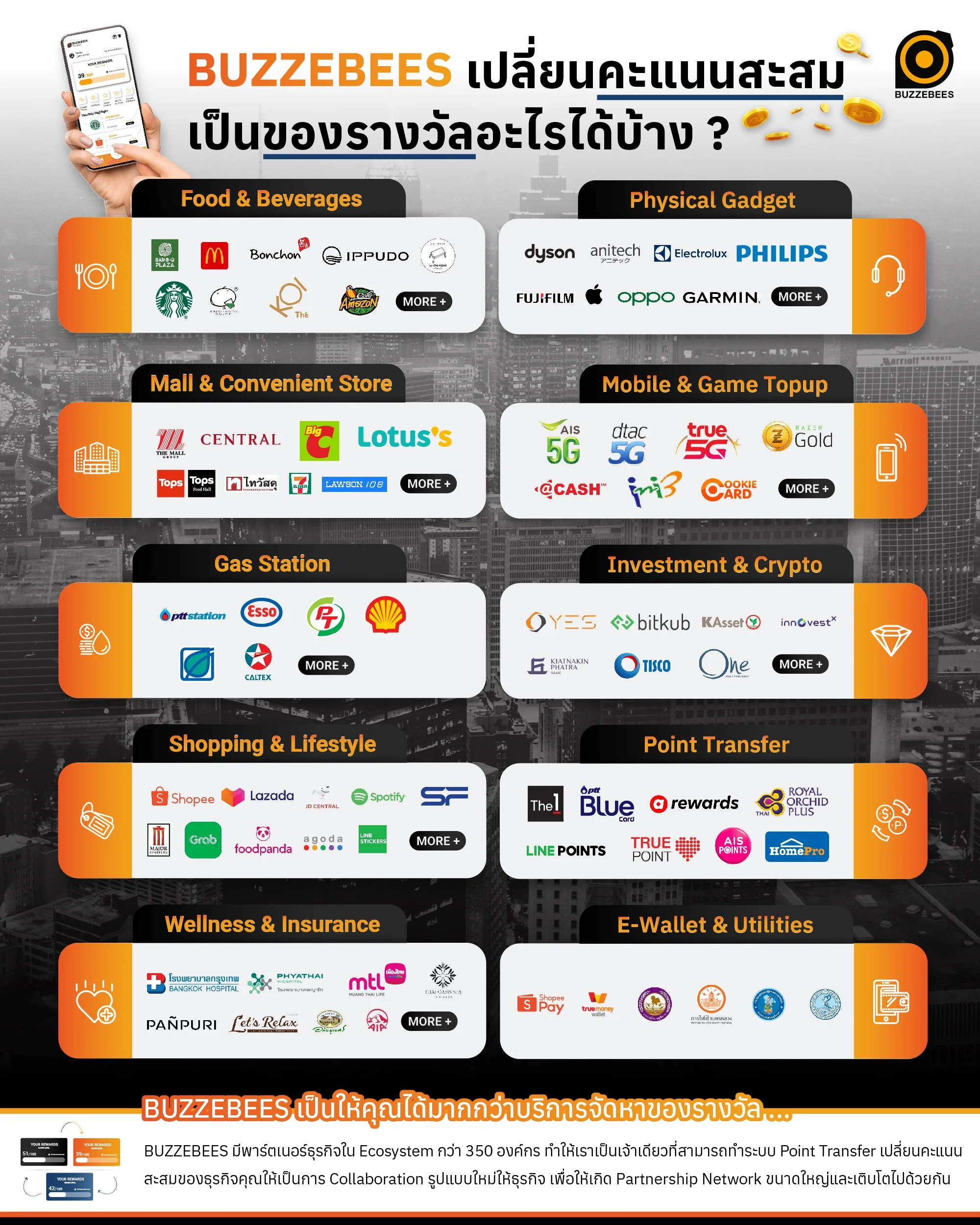 BUZZEBEES ช่วยให้แบรนด์สามารถดึงลูกค้าอย่างต่อเนื่องด้วย Privileges และ Rewards ที่เหมาะกับไลฟ์สไตล์ลูกค้าทุกรูปแบบเพื่อให้ลูกค้าของคุณรู้สึกพิเศษและเกิด Engagement กับแบรนด์อย่างสม่ำเสมอ ทำไม...