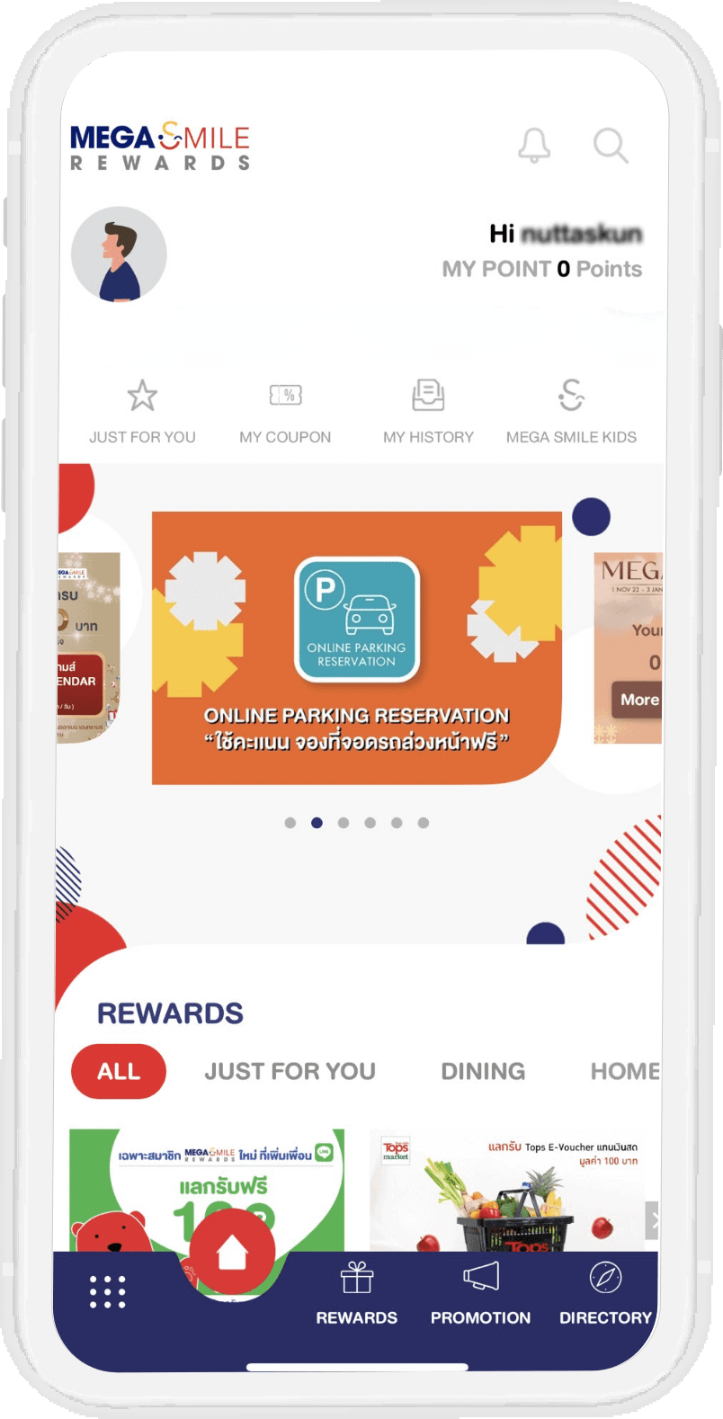 พัฒนาแอปพลิเคชัน Mega Smile Rewards ให้ลูกค้าของเมกาบางนาสะสมคะแนนจากทุกยอดการใช้จ่าย เพื่อนำไปแลกรับของรางวัลหรือสิทธิพิเศษต่างๆ พร้อมนำเสนอข่าวสารและโปรโมชั่นที่น่าสนใจจากร้านค้าต่างๆ ในเมกาบางนา